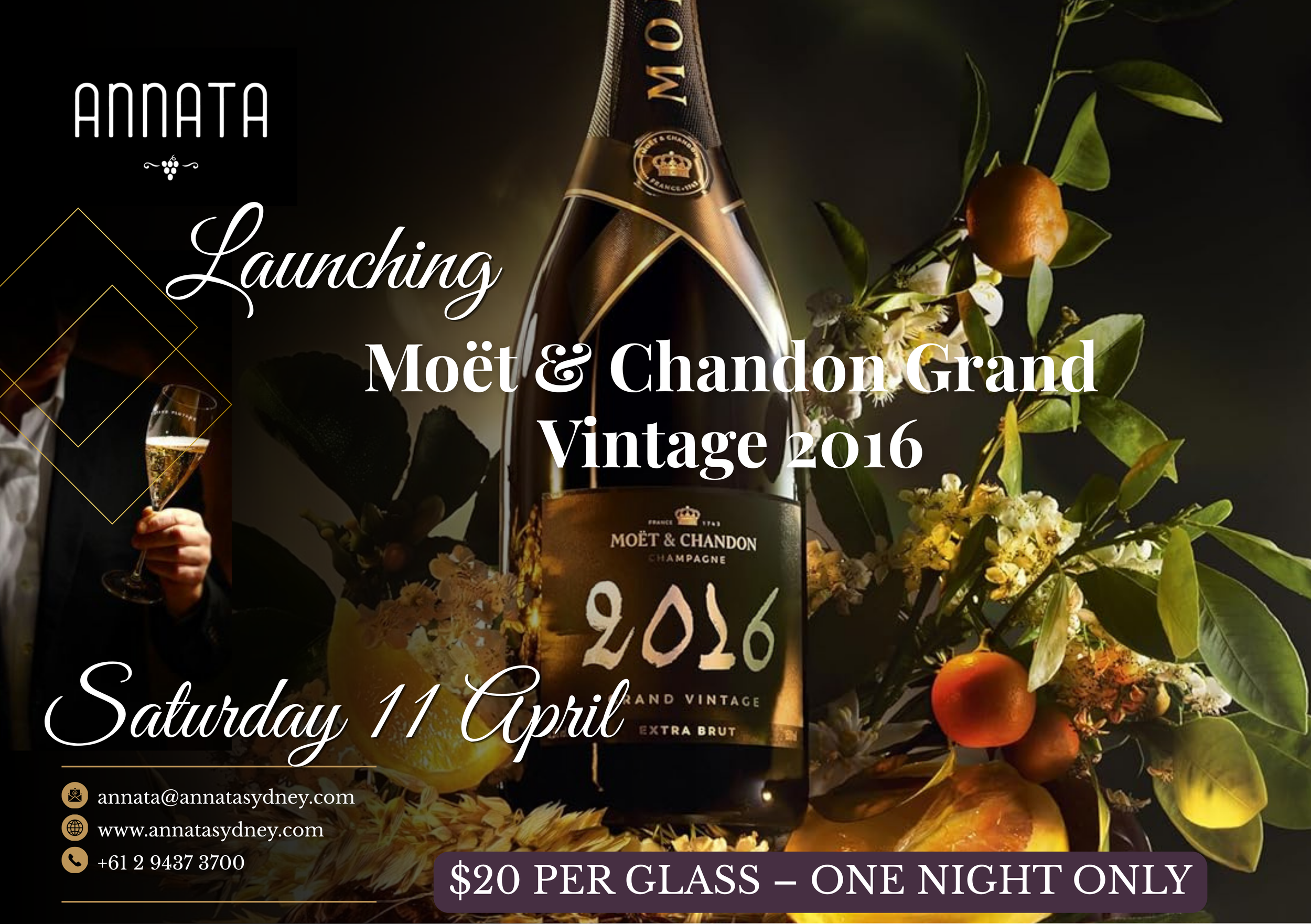 The 2016 MOËT & CHANDON GRAND VINTAGE will go onto the wine list at $190 per bottle as a most worthy celebration cuvee.