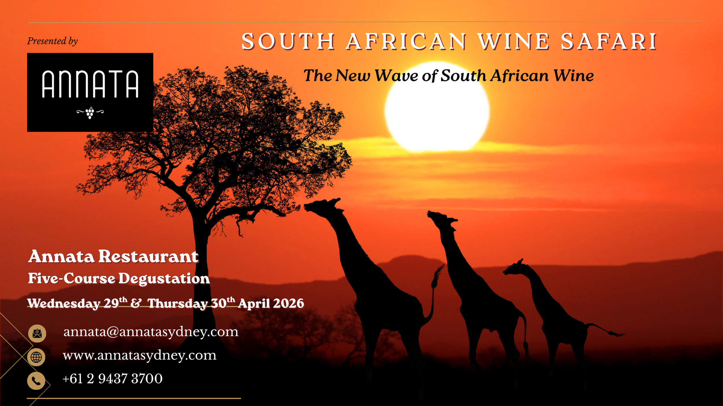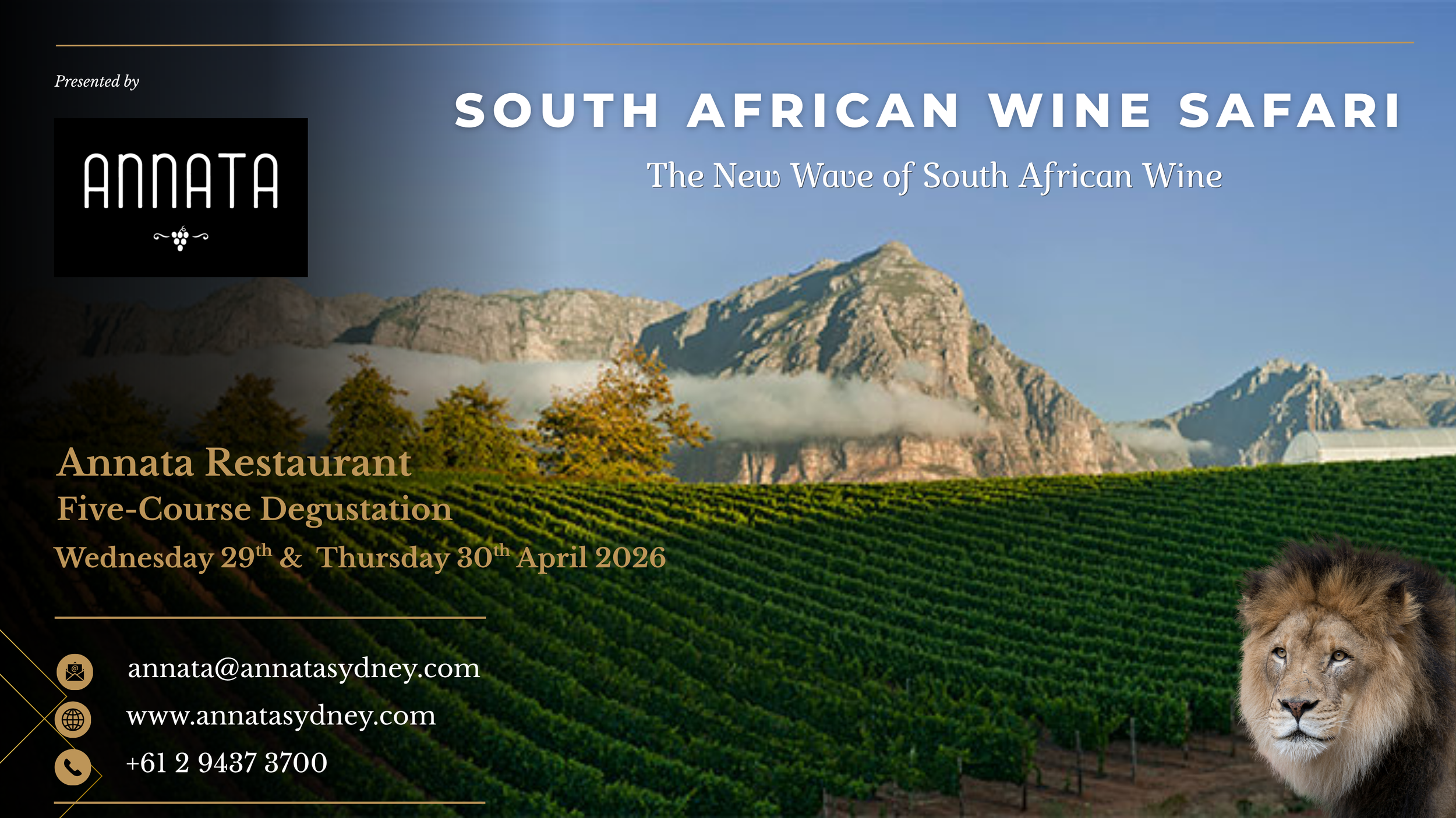 Annata invites you to experience an extraordinary evening of discovery with our South African Wine Safari, a curated journey through one of the world’s most dynamic and rapidly evolving wine regions. With a winemaking history dating back to 1659, South Africa is one of the oldest New World wine regions, and today it stands at the forefront of global innovation. Jancis Robinson’s recent review confirmed that South Africa is producing world-class wines, particularly whites, with Stellenbosch Cabernet emerging as a standout, all while offering exceptional value and a new wave of producers focused on freshness, balance and terroir.